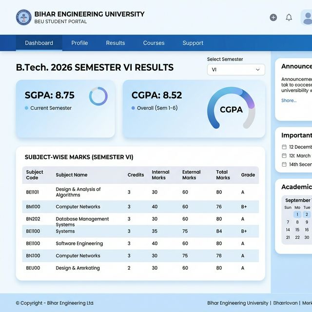Bihar Engineering University (BEU) releases semester examination results for BTech students every year. Many students face difficulty finding the correct result link quickly. This BEU Result Portal helps students easily access their Bihar Engineering University results online.